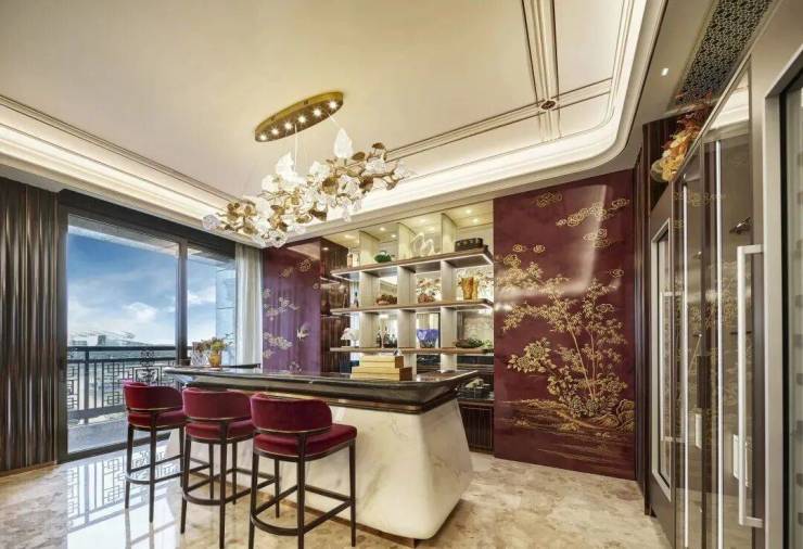 🌟维纳斯白玉质奢石吧台,配备全欧洲进口酒柜;