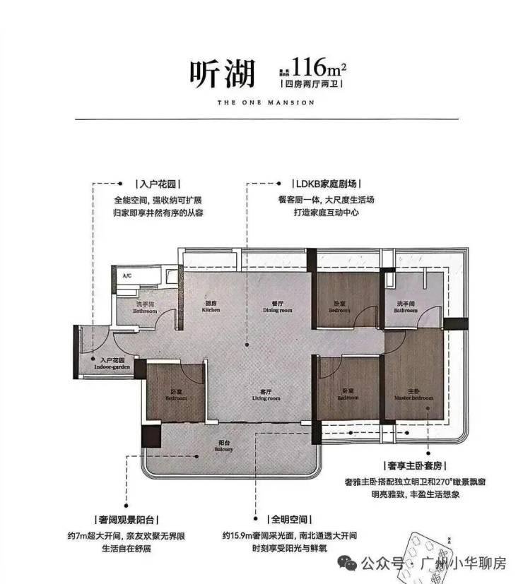 · 约13.1m采光面,四开间朝南,IMAX巨幕级视野