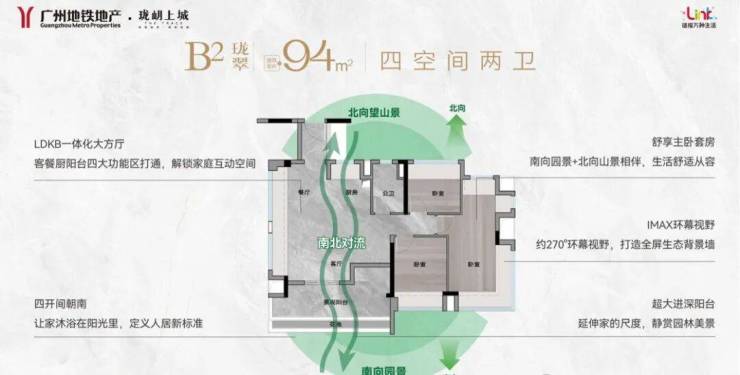 南北通透大方厅:LDKB一体化设计,客餐厅双面采光