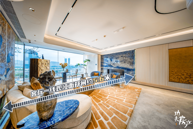 客厅一线观景面的开间宽度达到约5.6米,原生尺度就是这么大,将居住舒适度提升到大平层级的水准。