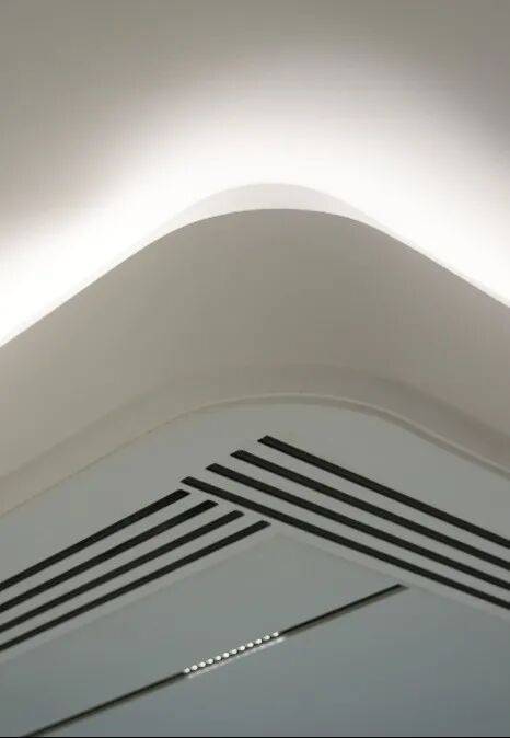 装配式弧形双眼皮吊顶,预制一体化转角配件,确保了转角的平顺,还降低因热胀冷缩而导致开裂的可能。