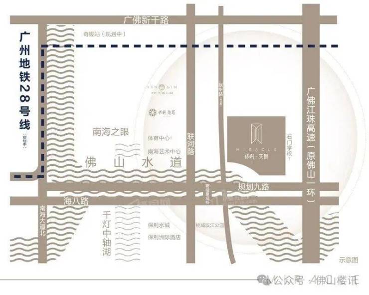 交通配套上,步行约1.2公里可达广佛环线大沥站(预计2025年全运会前开通),未来可直达广州白云机场;规划中的佛山地铁6号线大沥站也将连接广州滘口。