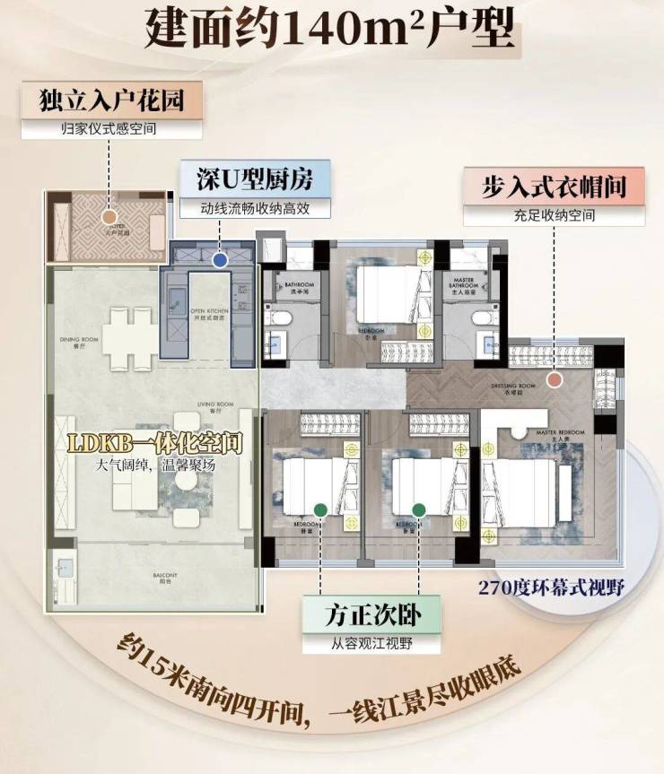 我们以这次开放的建面约140㎡户型为蓝本,一起看看它到底施展了哪些空间魔法。
