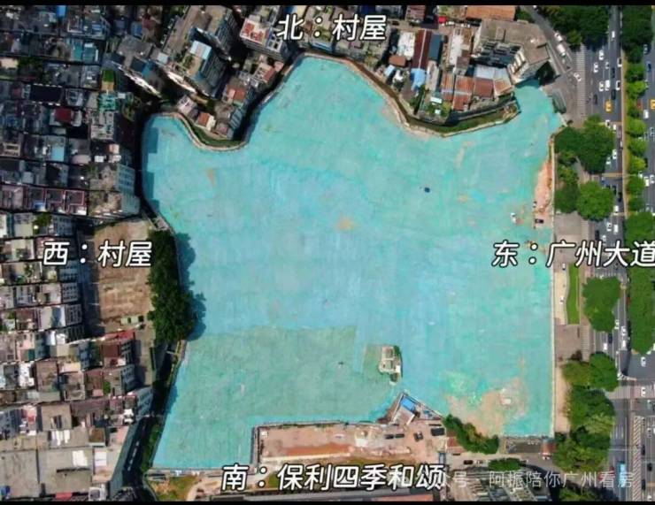 第一条,仍然是广州主城区的特色,项目地块的北向和西向是城中村。低头就是村屋景观。东向就是广州大道南这条大动脉,24小时车流不息。南面是保利的四季和颂,也已经交楼了。