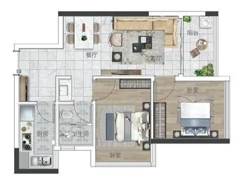 产品一:62㎡ 两房两厅一卫