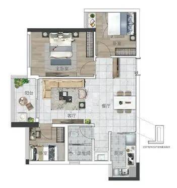 产品五:79㎡ 三房两厅一卫