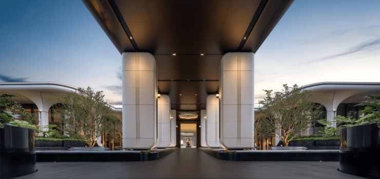 环抱式景墙+酒店式落客+宇宙黑金照壁