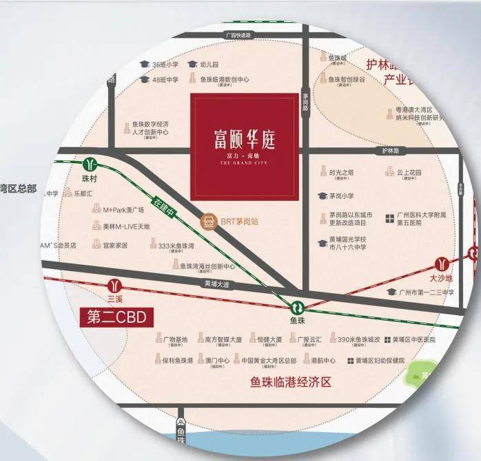 富颐华庭项目总用地约80万㎡,总建面约230万㎡,集居住、商业、园林、教育等各方面配套于一体,处广州第二CBD核心地段,是区域功能丰富、设施齐备、近年来绝无仅有的全配套市中心大盘。