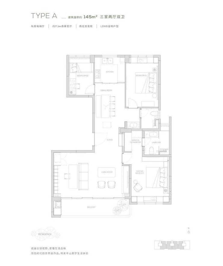 独享私家电梯厅-约7.1m²森幕宽厅-LDKB全明户型