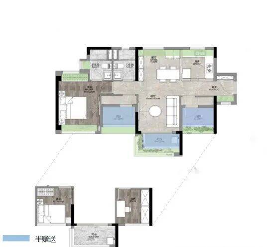 80㎡三房两卫——南北对流·12大赠送空间