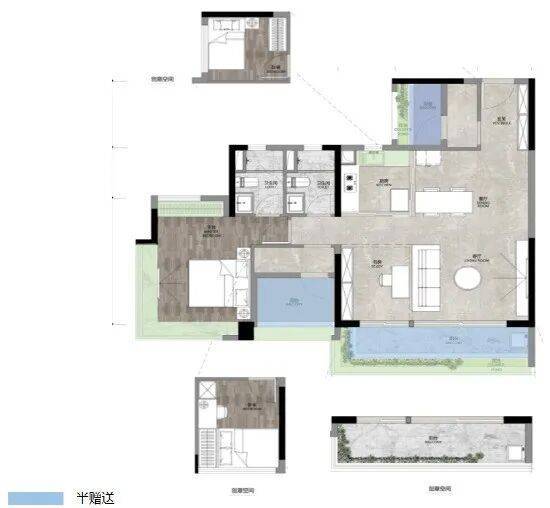 保利和悦滨江产品是广州第一个实用率做接近100%的项目,赠送率高,其中85%户型做到南向设计,三 四开间朝南, 1+X灵活改造空间。