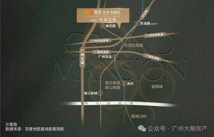 项目位于广州城市中轴,天河北板块,距离珠江新城直线距离仅5公里,一路串联广州大道北、天河北、珠江新城等商圈