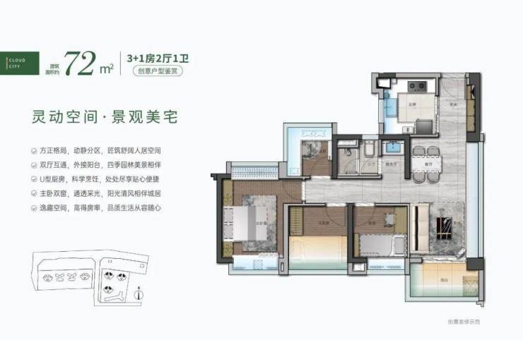 🏦一期在售户型:72m²/88m²/104m²