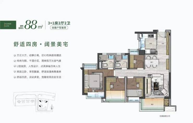 在售户型72-88-105都是四房户型