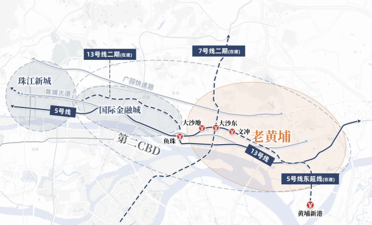 而且老黄埔板块本身是第二产业比较多,本地人群购买力偏弱,实际购买力来自5号线和13号线通勤的上班族,核心逻辑是吸收主城区外溢(1小时通勤圈)。