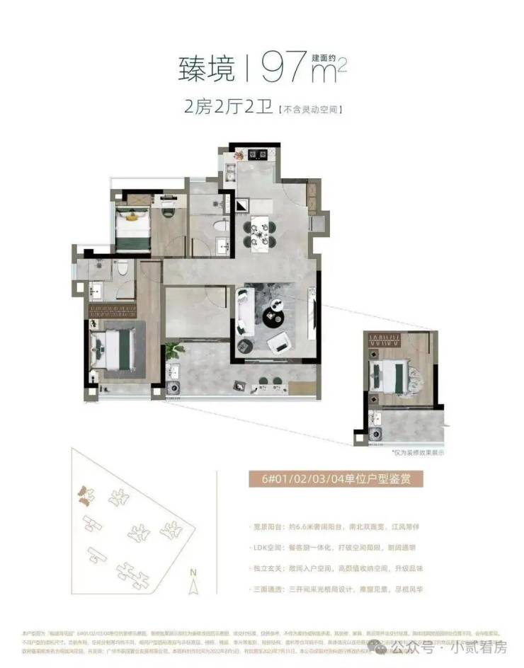 建面约97㎡,江园双景臻席,不仅能欣赏花地湾江面卓绝风光,还能俯瞰榕诚公园,以及GVL怡境国际匠心打造的“山林麓畔 隐翠森居”主题大师园林,LDK餐客厨一体设计,约6.5米宽境阳台。