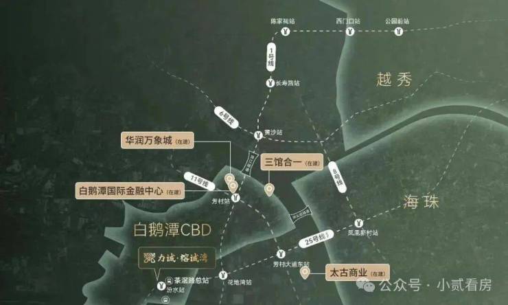 自带建面约60万方商业综合体规划,距离茶窖市场近,周边大部分都是做茶叶和批发的生意,建材和五金等,谈不上繁华。我们有朋友以前也在芳村待过两年,对于这边村子还是比较多的,芳村地铁口附近的有个肉菜市场,东西还是非常便宜。在力诚榕诚湾项目400米左右有乐家生鲜,雅源小百货,春仔生活超市,基本能满足生活需求。