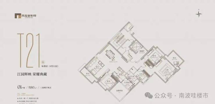 有254㎡、277㎡等面积。254㎡的三房分布在t10、t23、t26栋的3-9层,2梯3户,有三房三卫;277㎡的四房分布在t10、t23、t26栋的3-8层,2梯3户,有四房两卫或三卫。