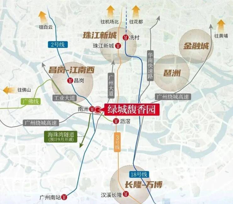项目家楼下就是地铁广佛线和2号线的交汇处南洲站,属于双地铁上盖,在这里乘坐地铁3个站可到客村、5站珠江新城、9站到琶洲、8站到万博/金融城等地,非常方便,而且项目的地库可以直通地铁,后续建成后出入归家都是全程风雨无阻。