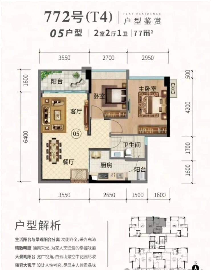 4、景观资源较好:高层住户可享一线白云山景观,楼下有约4000㎡的空中花园,环境优美。