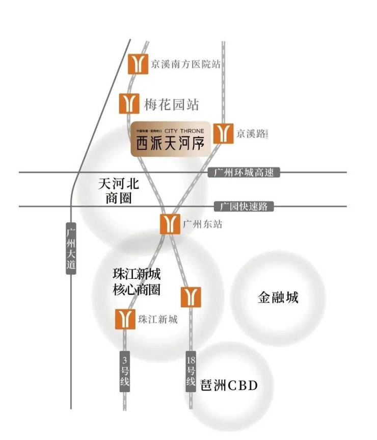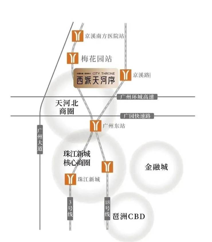 直线距离约200米地铁3号线梅花园站,广州地铁南北主动脉,5站即达珠江新城CBD;毗邻广州大道、广州环城高速,畅享珠江新城6km黄金生活圈,广州大道交通路网通达广州各大主城区域。