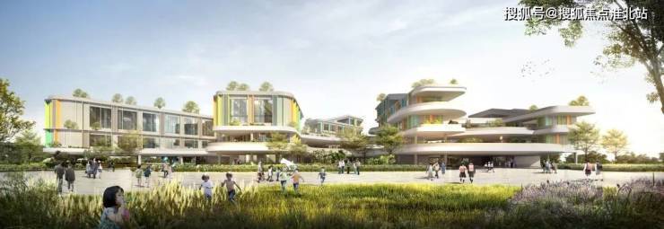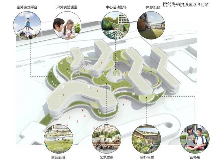 在自配建学校的设计中,我们将花园带进校园。功能单元区有机融合到绿化平台、开放空间之中,打造一个与环境密切链接的、绿色生态的、活力共享的云上立体校园。