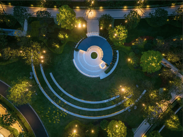 ②约6000㎡自然国际圈层会所:以下沉式庭院的规划进行打造,共有地上两层、地下一层合计三层的设计,打造多庭院花园及多露台空间,提供清晨午后惬意时光,使场所融入自然、亲和自然。