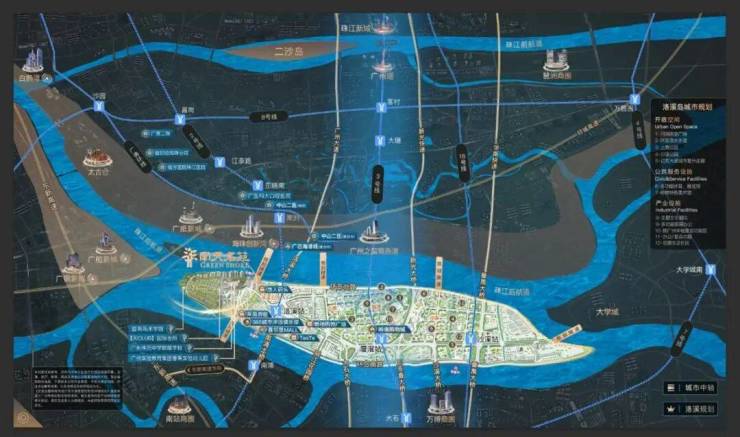 ③2018年2月24日国规委发布主城区范围,洛溪岛纳入主城区核心地段,同时广州中轴南移至洛溪岛,形成广州塔、珠江新城城市中轴景观。