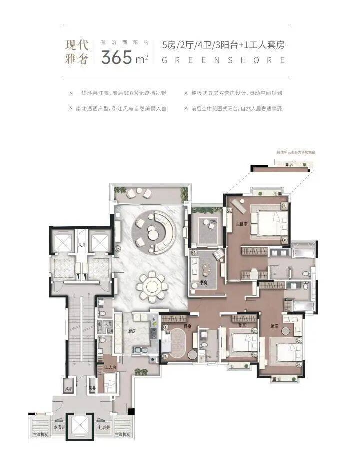 约365㎡5房双套房|2厅|4卫|3阳台+1工人套房