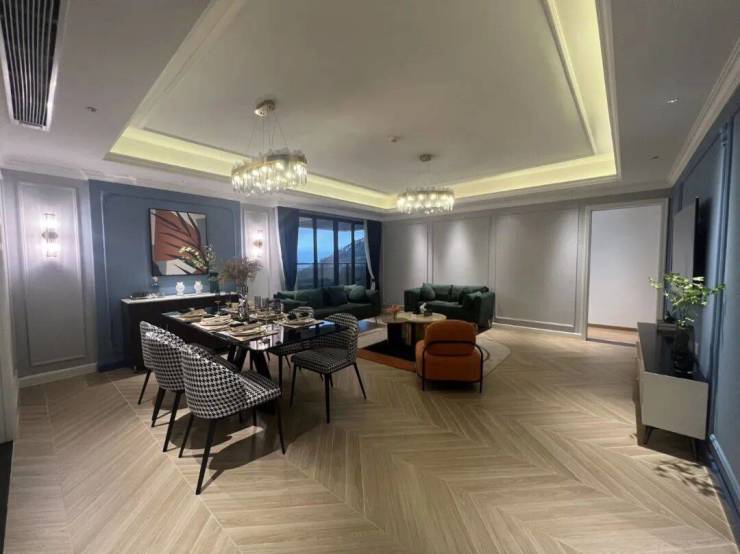 双厅连通的设计,使得空间流畅且富有层次,超7.5米的进深与阔绰大开间,尽显尊贵与大气。