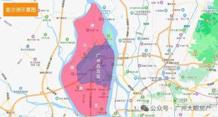 金沙洲的区位,其实都还行,横跨广州白云区和佛山南海区,临近荔湾,和广州的主城区相隔不远,尤其是广钢新城、白鹅潭、白云新城这些,对于不少人来看,这样的距离,是符合通勤距离的。