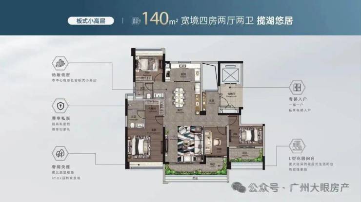 小高层140㎡南向板式阔境大四房