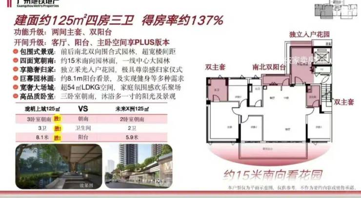 同时还将推出约 110 - 125㎡低密板楼产品,如约 125㎡户型有 4 房 3 卫双主套。