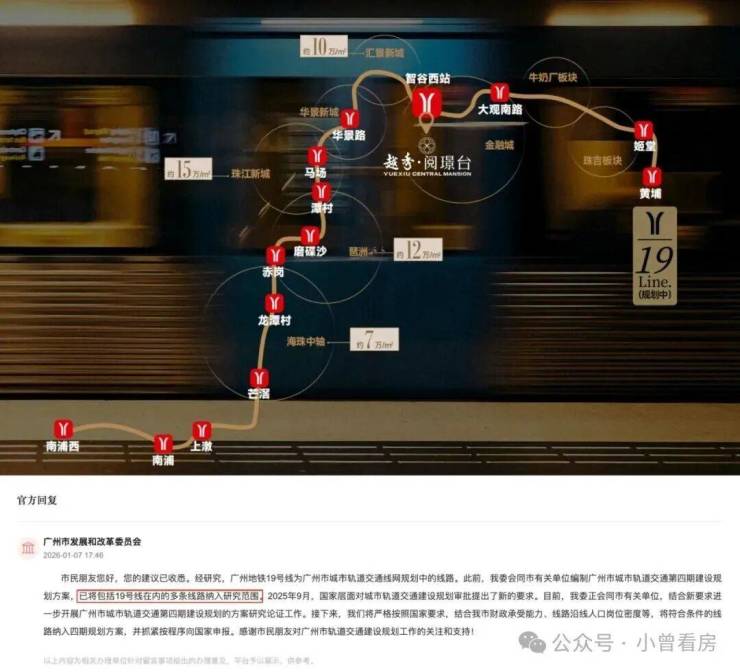 该线路广氮西站预计落在天河智谷广棠片区,未来通车后,项目业主可直达珠江新城(约4站)、琶洲(约6站),大幅提升轨道交通便利性。