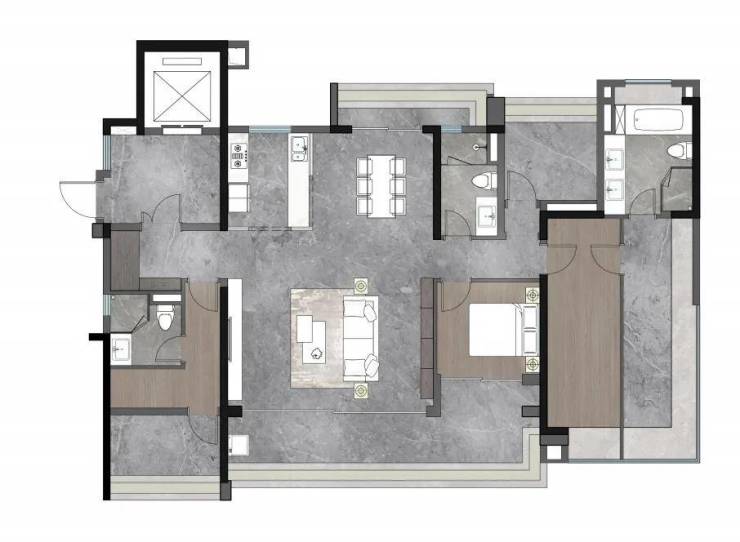 建面约170㎡航母大平层,LDKG世界会客厅,南北通透,层大人物的生活主场,豪华双套卧,主卧270度飘窗配尊崇衣帽间及酒店式双台盆;