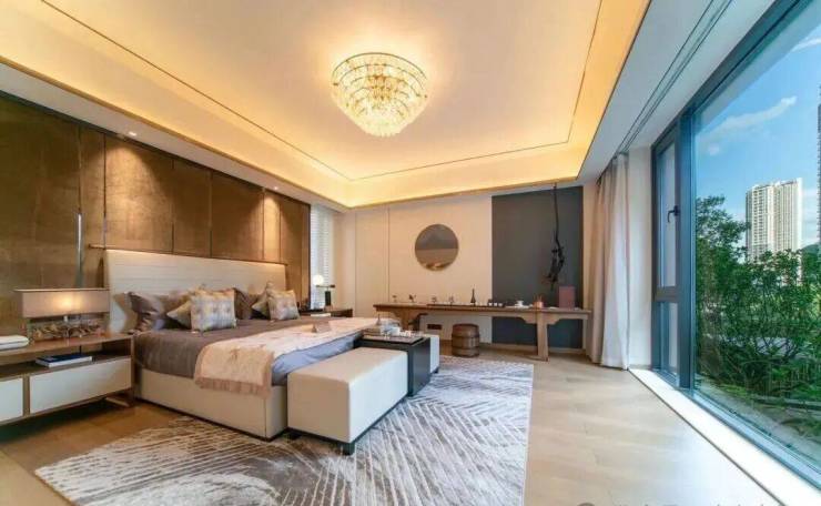奢阔主卧配以全落地窗,磅礴山水尽收眼底;额外享有休闲露台,俯瞰庭院葱茏,独享一片天地。