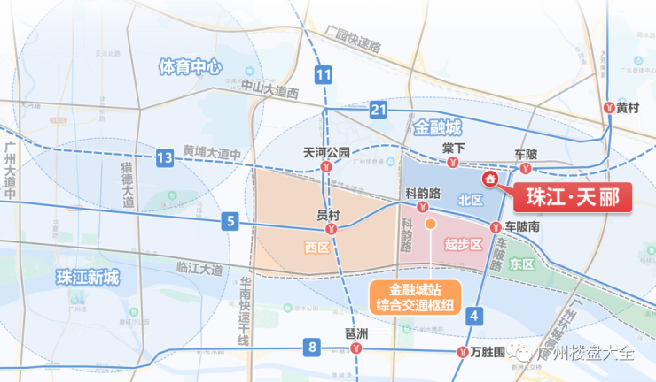 驾车出行有中山大道西、黄埔大道中,未来还有新滘东路隧道直达琶洲,从交通路网来看,珠江新城、金融城、琶洲这三个板块链接的非常紧密,出行非常便捷。