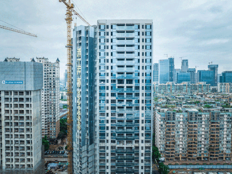 目前珠江天郦的D、E栋已经封顶,项目玻璃幕墙外立面,即将全部完工。