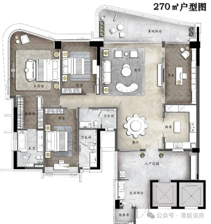 【A户型】王牌户型 270㎡环幕江景四房,约9米超大邮轮式阳台,一线望江无遮挡,专梯专户,墅级空中双花园,约28㎡超大私家庭院,多功能空间,约42㎡超大主卧空间,270°环幕江景,阔绰双主套房设计。