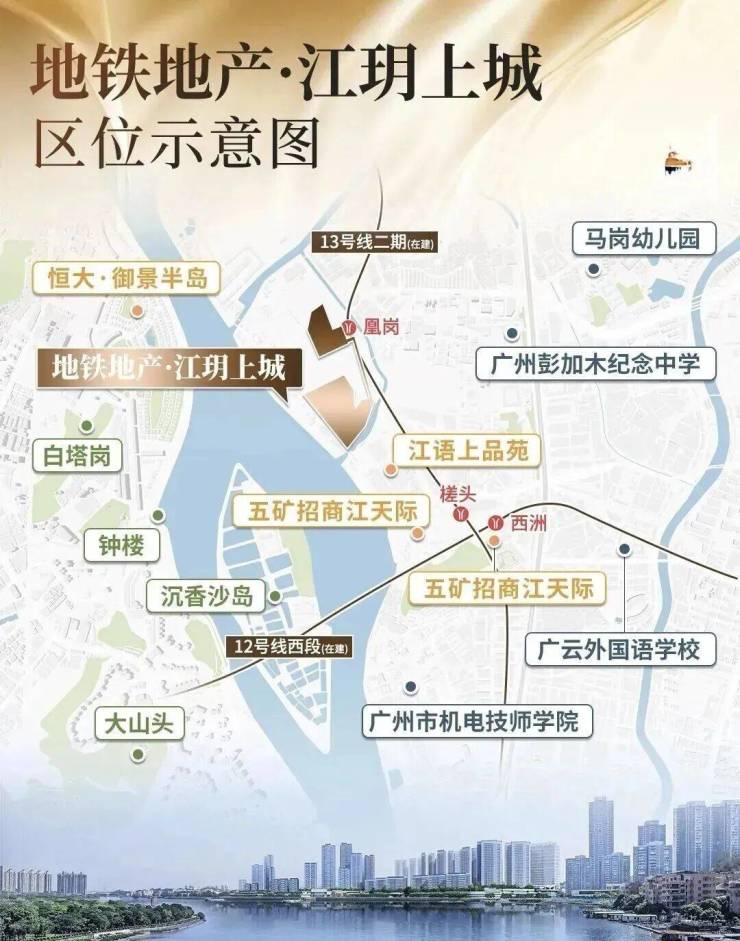 【荣耀定名·匠心启程】广州地铁地产倾力锻造的白云槎头TOD标杆之作,正式以"地铁地产·江玥上城"之姿耀世登场。该项目以"轨道交通+生态居住"的先进理念重塑城市格局,犹如镶嵌在珠江玉带上的玲珑宝玉,即将开启滨水人居的全新篇章。
