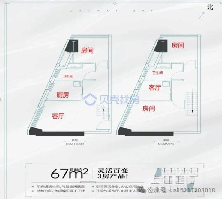 建面约67㎡高赠送2房(可明火)