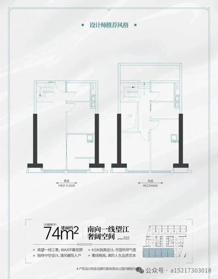 建面约74㎡南向一线望江LOFT(可明火)