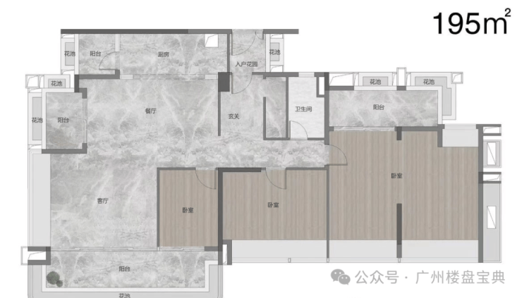 高区25-37楼,2梯3户,面积段有120、160、195平三个面积段。