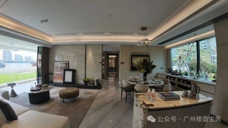 建面190平,五开间朝南,客厅开间约8米,进深也有8米,客厅足足有64个平方,非常大气,坐在客厅就能望到珠江。