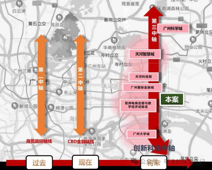 ✔广州发展第三中轴:黄埔位于广州第三中轴“创新科技中轴”之上,将引领广州下一个黄金十年,而项目正处于第三中轴核心,势不可挡
