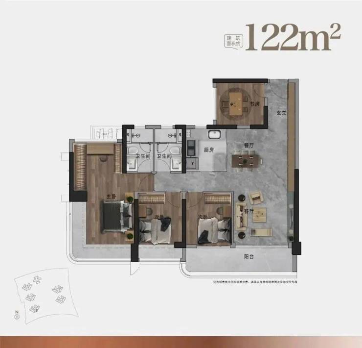 122㎡户型:约6.6M南向景观阳台 | 270°环幕瞰景主卧|多元化功能阳台