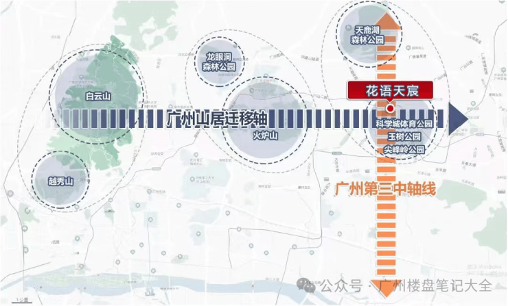 位于广州科技创新轴(第三中轴)与主城山居“绿腰带”黄金交汇处