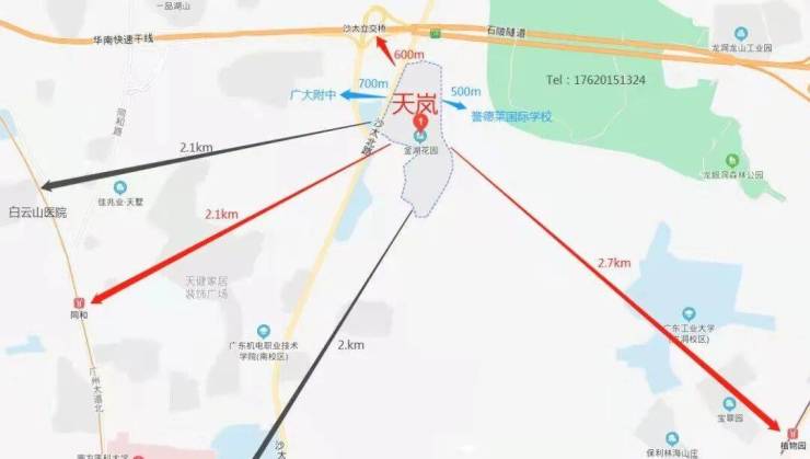 周边直线3km范围内有3个地铁站(同和、植物园、京溪南方医院),轨道交通发达,距离最近的地铁站是同和。