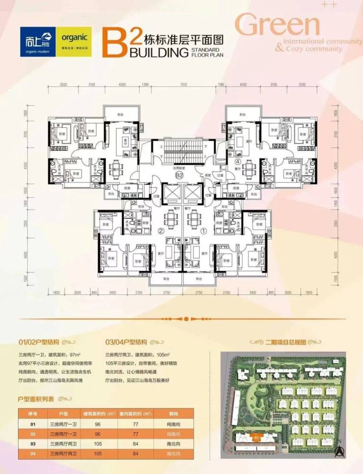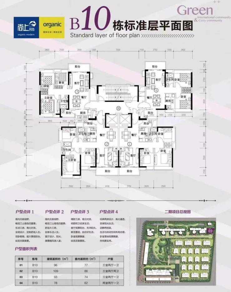 洋房【户型优点】:两梯四户、方正实用、高层、户户朝南
