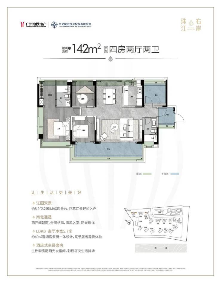 :项目是南向江景房,稀缺性极高,居住体验非常舒适。